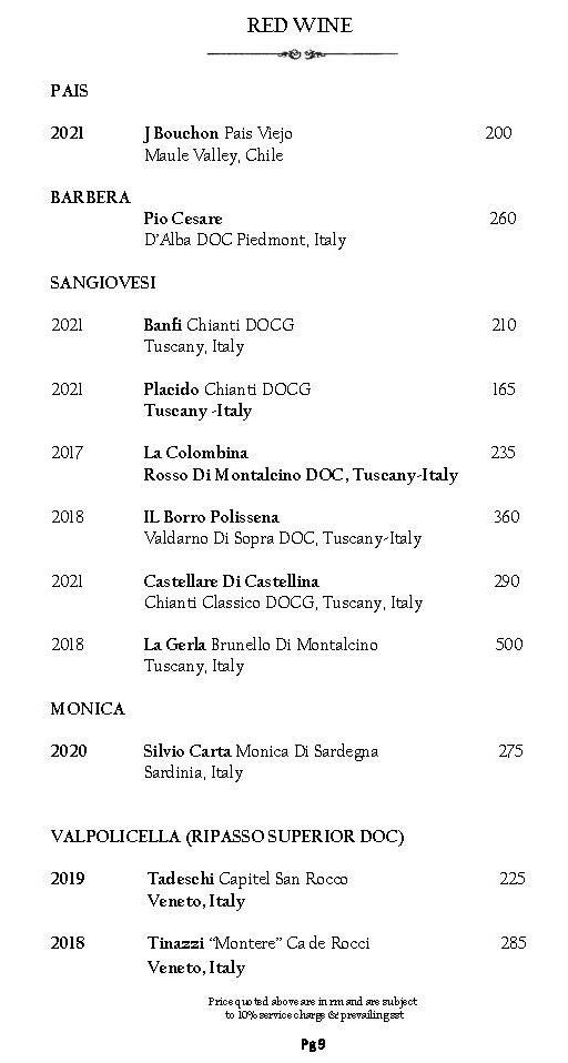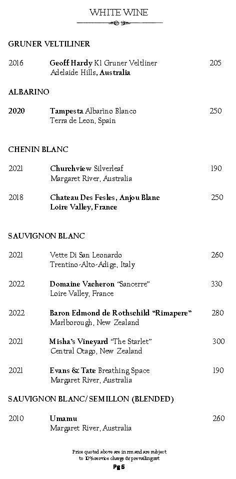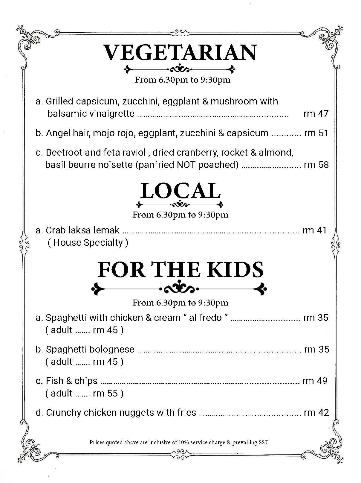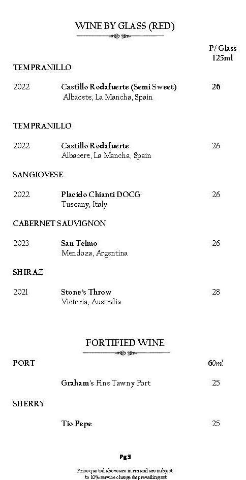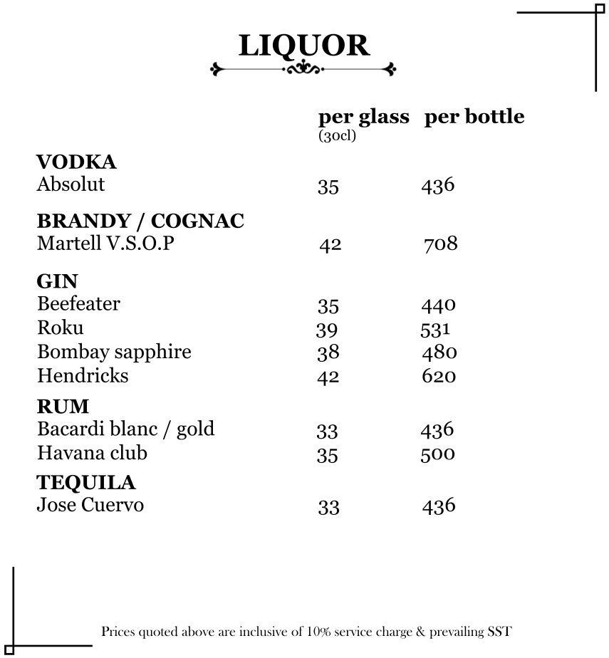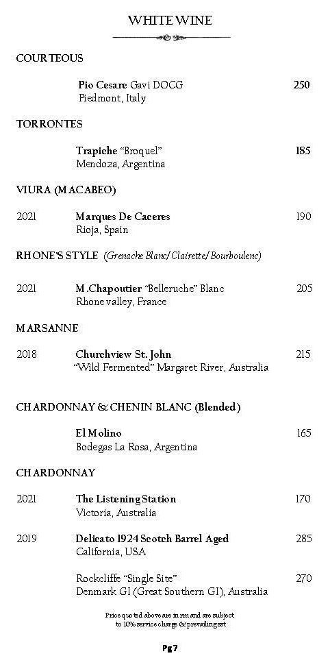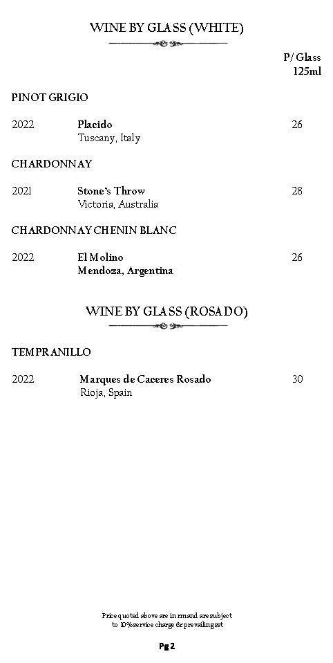 PRICES ARE SUBJECT TO 10% SERVICE CHARGE AND 6% SALES AND SERVICE TAX UNLESS OTHERWISE STATED