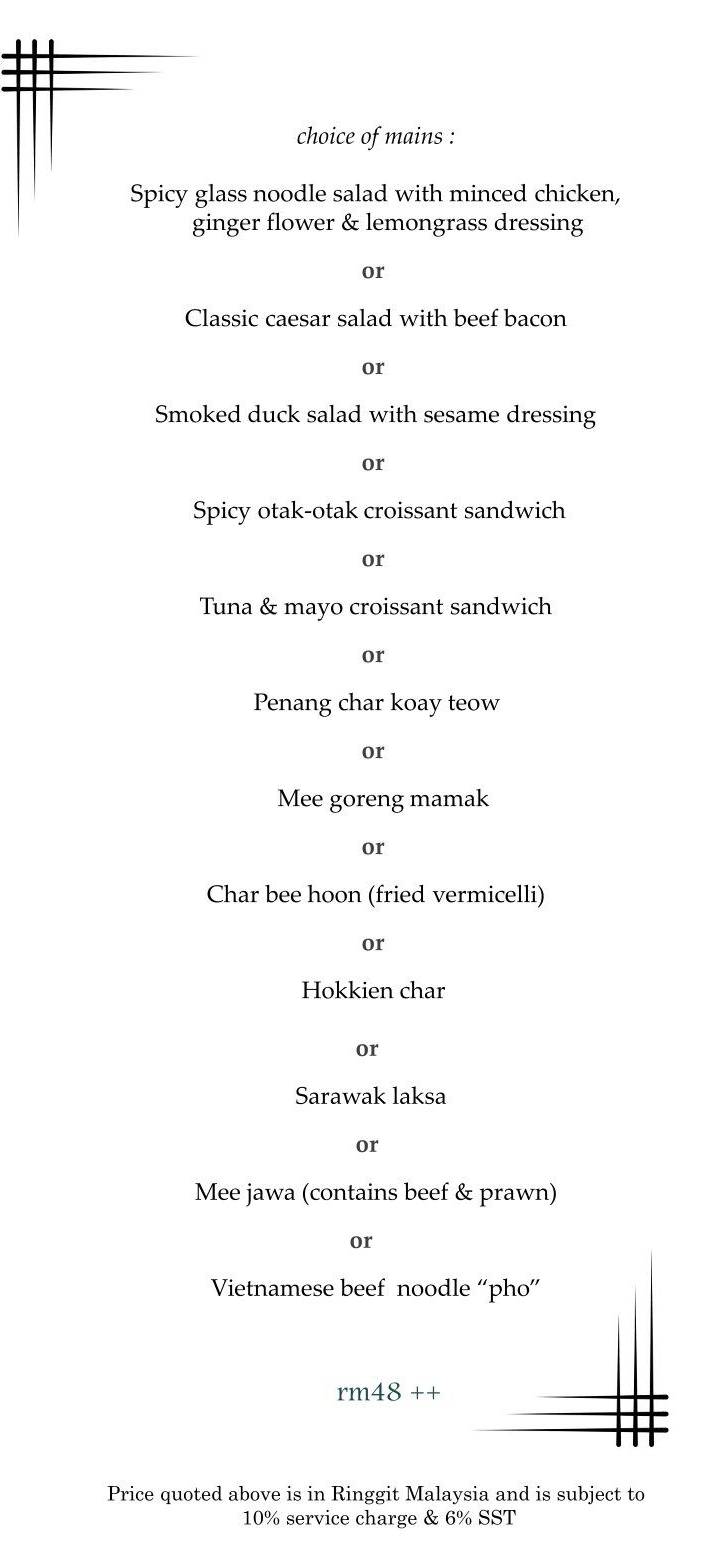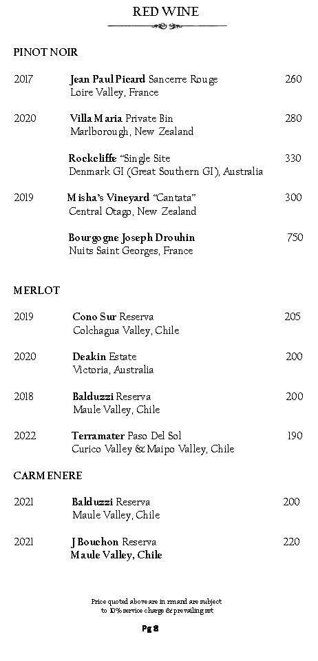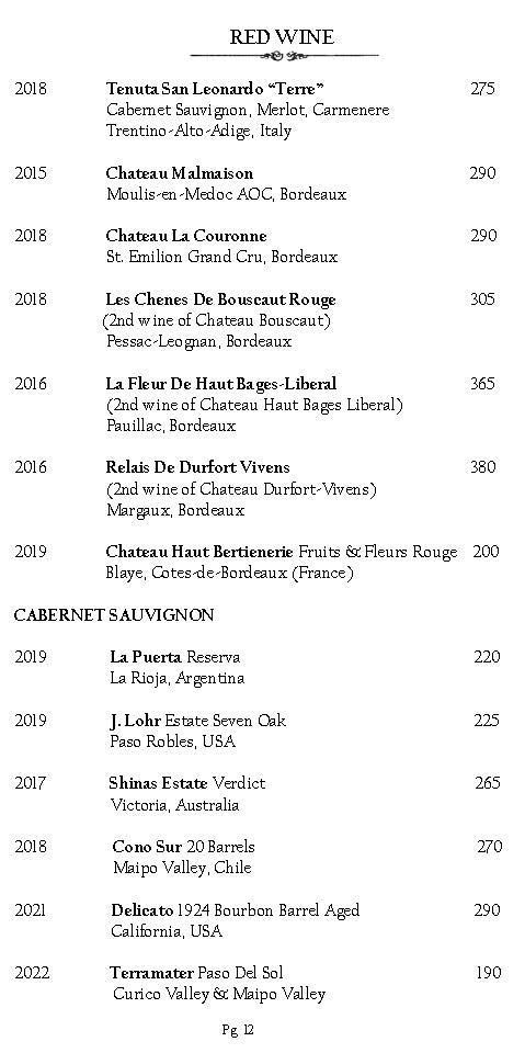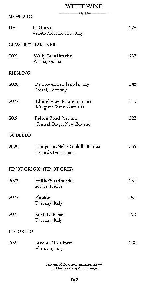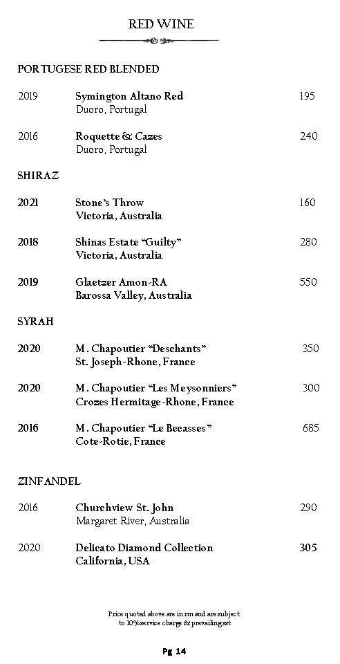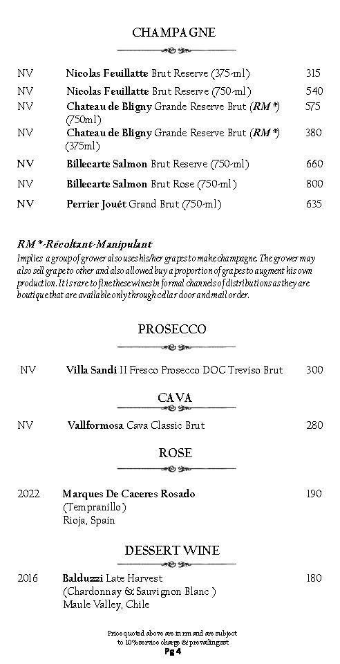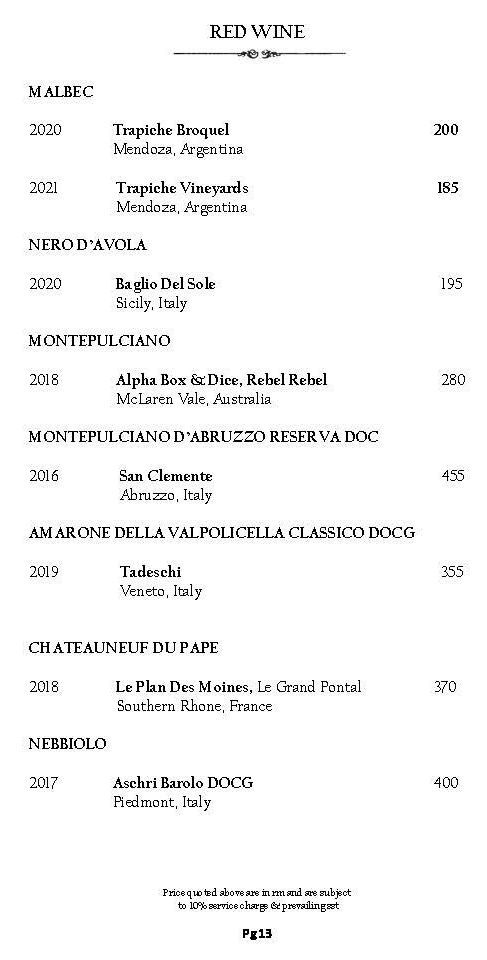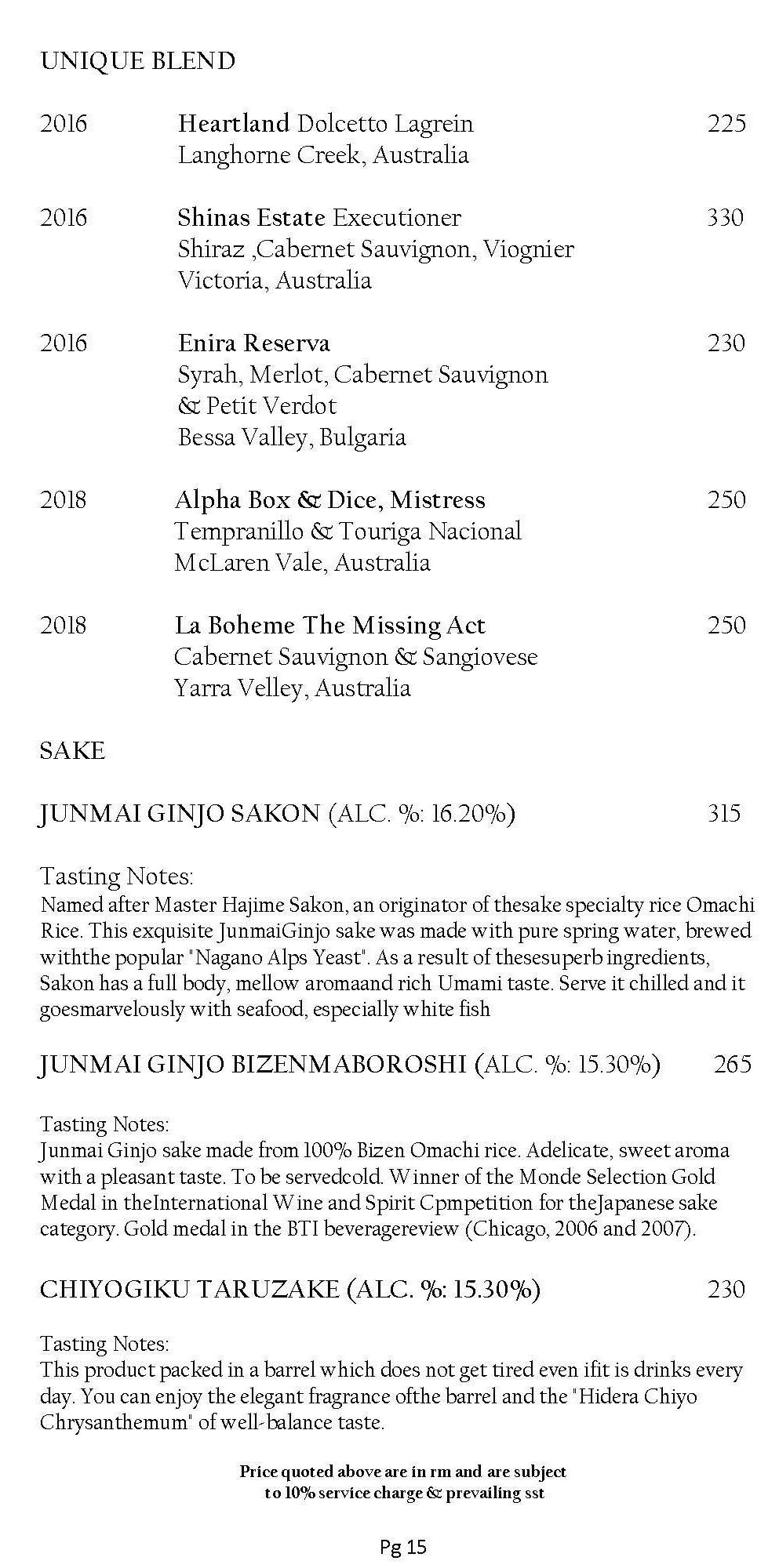 PRICES ARE SUBJECT TO 10% SERVICE CHARGE AND 6% SALES AND SERVICE TAX UNLESS OTHERWISE STATED
