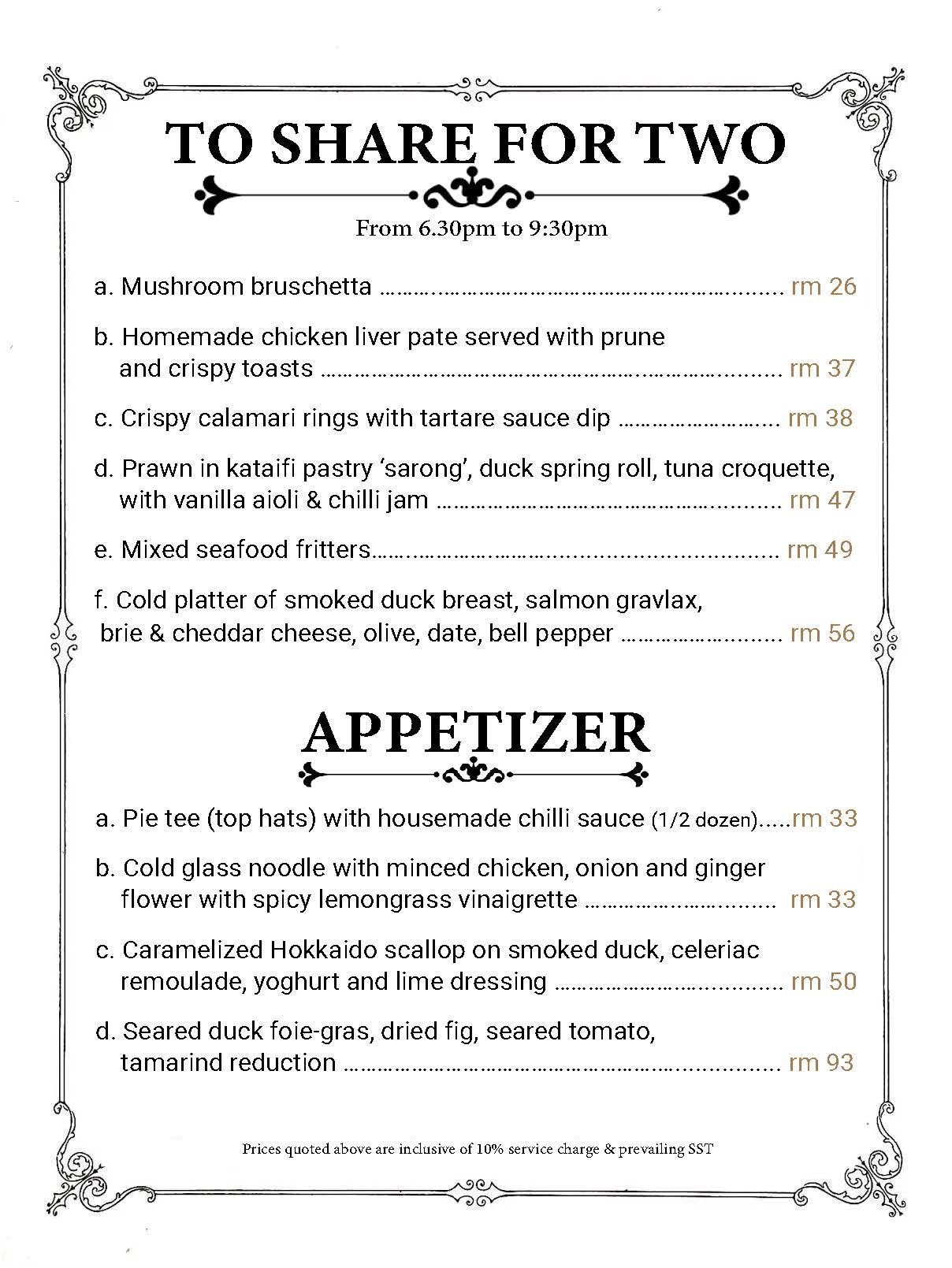 Available from 6.30pm - 10pm (last order 9.30pm)