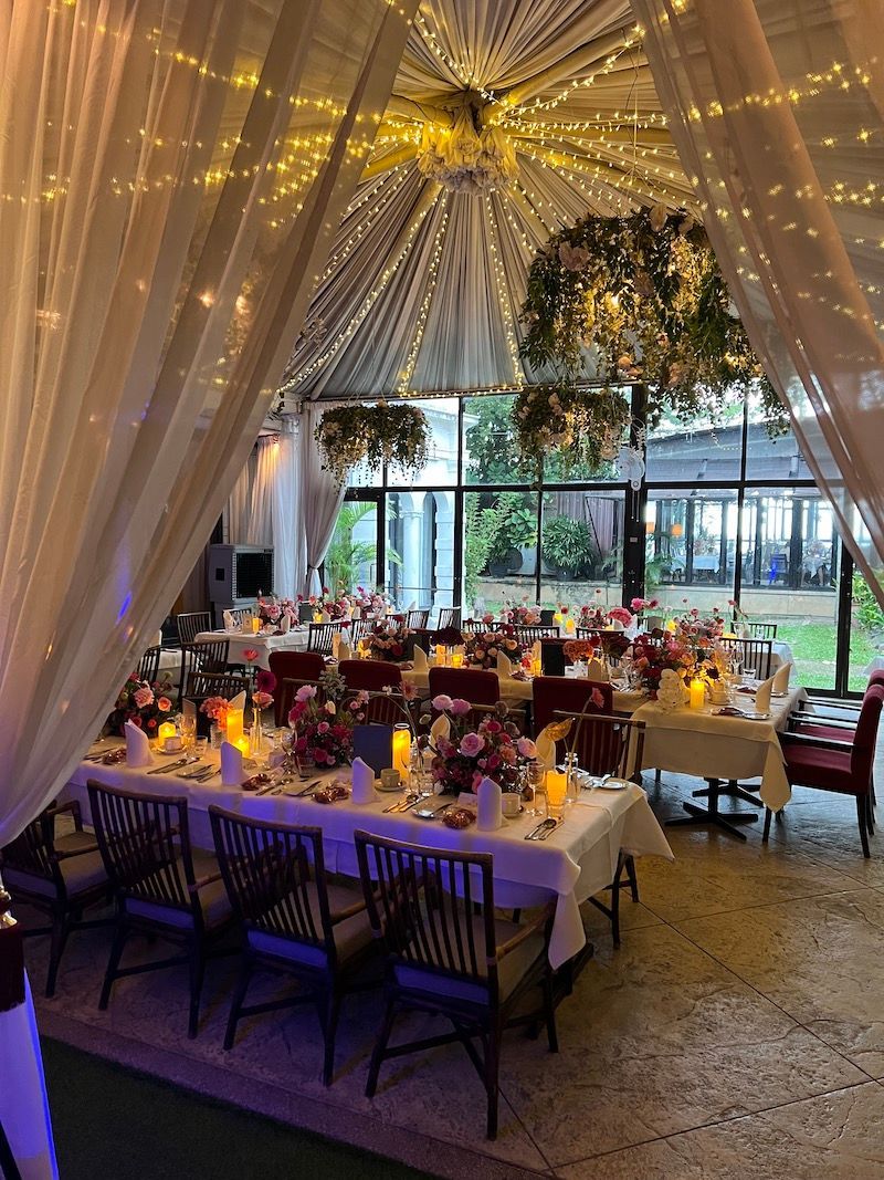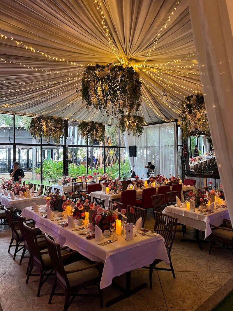 YOUR WEDDING AND DINING EXPERIENCE WILL BE ENHANCED BY THE QUIET ELEGANCE OF THE DECOR. THERE IS A LOUNGE AREA FOR COCKTAILS AND PRE-DINNER DRINKS. A PRIVATE ROOM FOR 12 TO 14 PEOPLE IS AVAILABLE, AS WELL AS ANOTHER THAT SITS UP TO 20 IN A GAZEBO.
